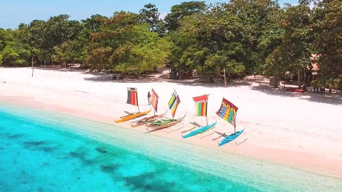 Famous for its unique pinkish sand, a natural wonder. The island is known for swimming, snorkeling, and its distinct natural beauty.